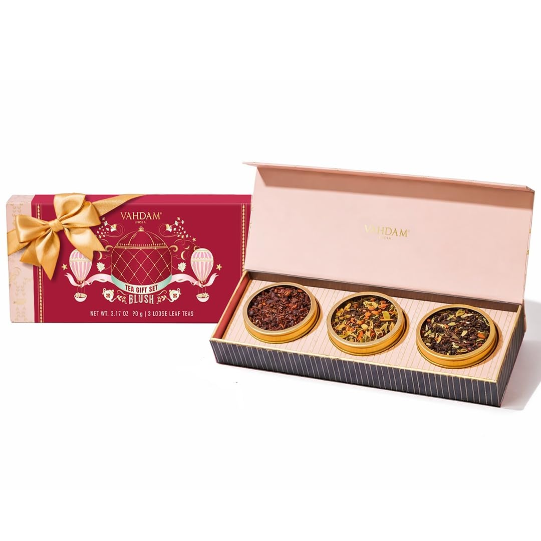 VAHDAM, BLUSH - Set regalo di tè assortiti, 3 tè pregiati in scatola di latta | Tè in foglie sfuse | Un regalo per tutti