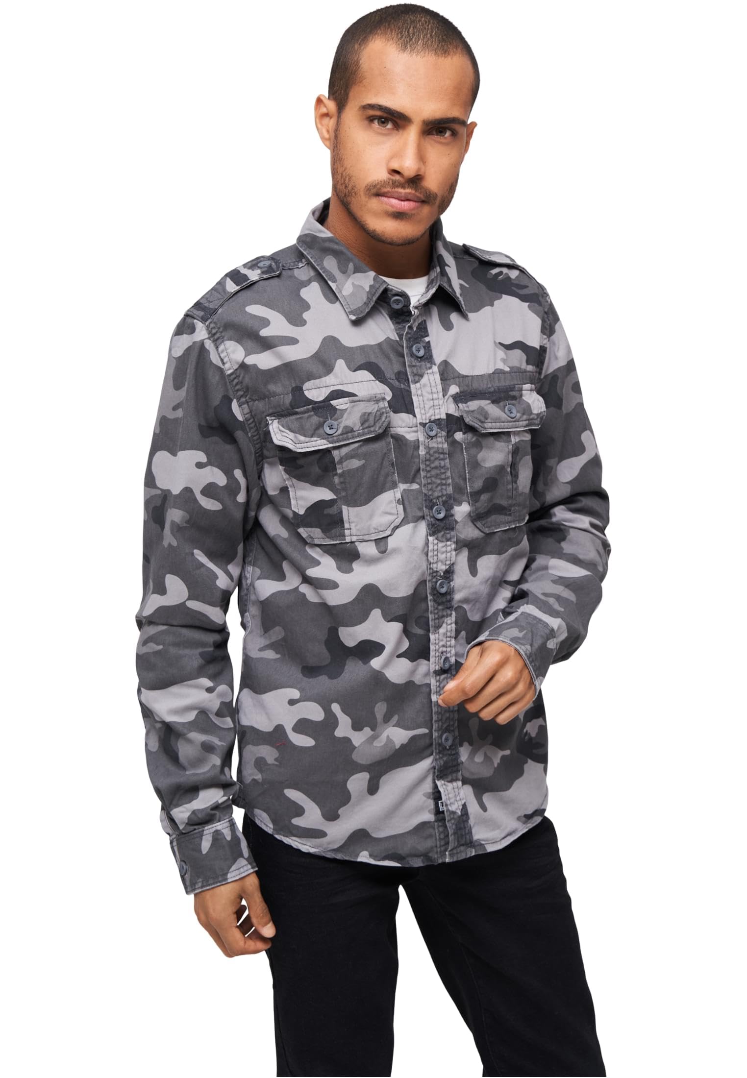 Brandit Vintage Shirt Long Sleeve, Uomo, grey camo, 3XL