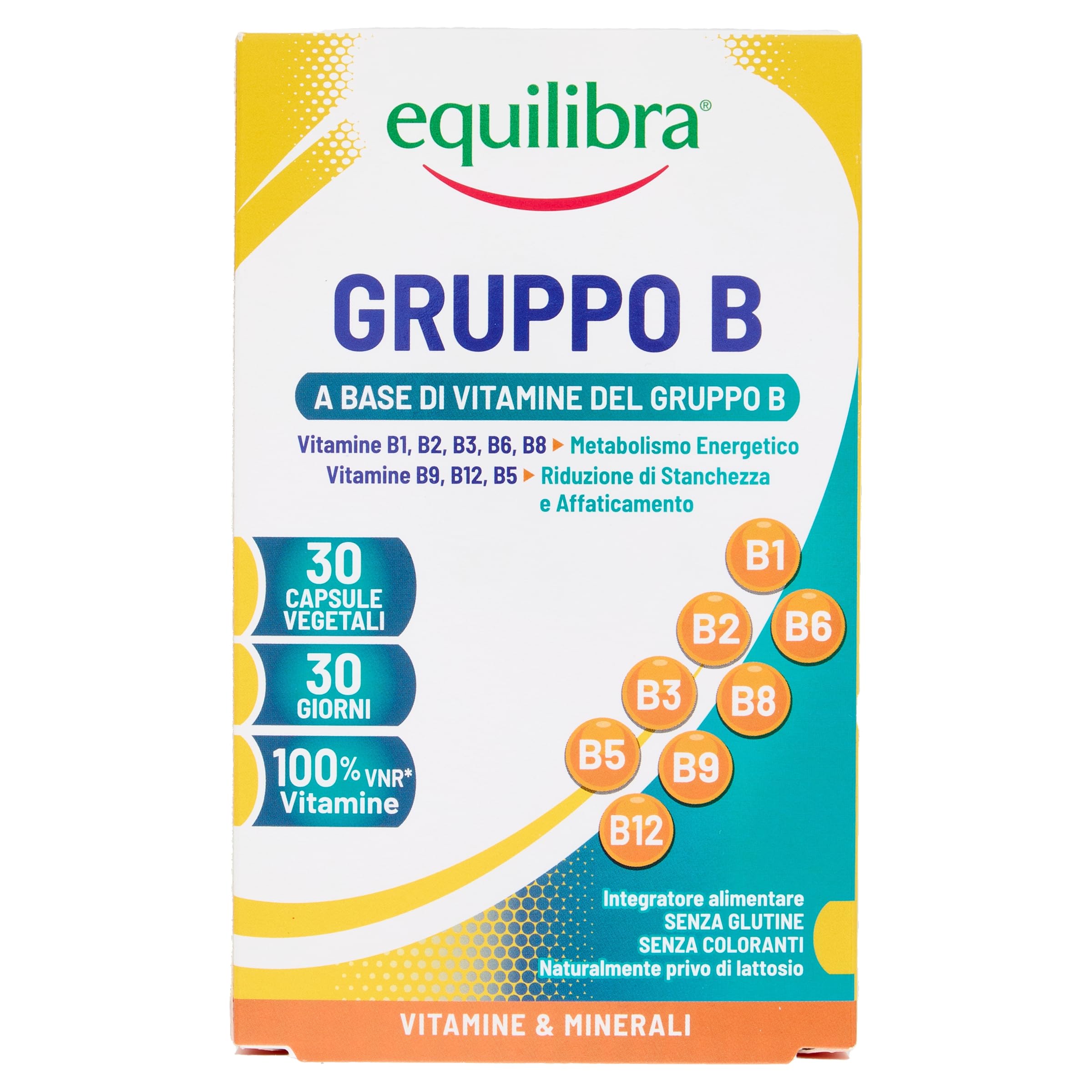 Equilibra Integratori Alimentari, Gruppo B, Integratore di Vitamine del Gruppo B per la Riduzione di Stanchezza e Affaticamento e per il Normale Metabolismo Energetico, 30 Capsule