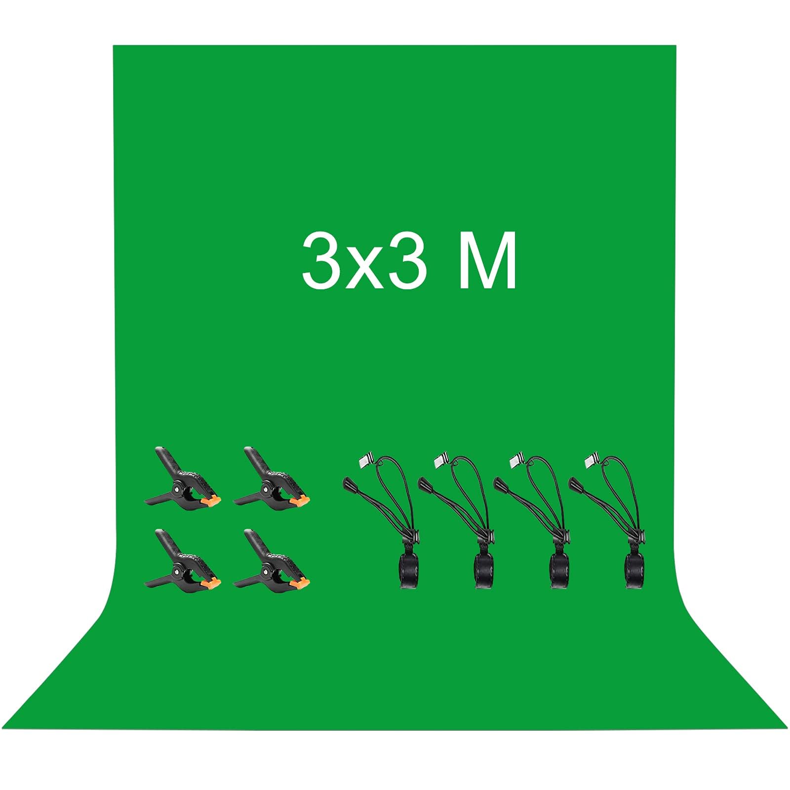Vevelux 3x3 M Sfondo fotografico con 8 Clip Antipiega, 100% Poliestere Pieghevole Lavabile Schermo Verde Resistente per Fotografia, Video, Fotocamera, Foto, Riprese Video