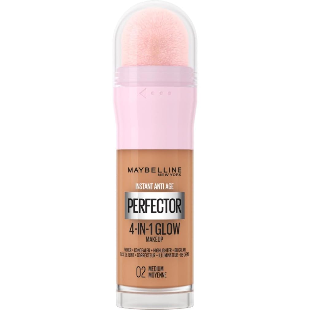 Maybelline New York Fondotinta Perfezionante Instant Perfector 4-in-1 Glow, Minimizza, Corregge, Uniforma e Illumina, Finish Luminoso Senza Imperfezioni, 20 ml, Tonalità: 02 Medium
