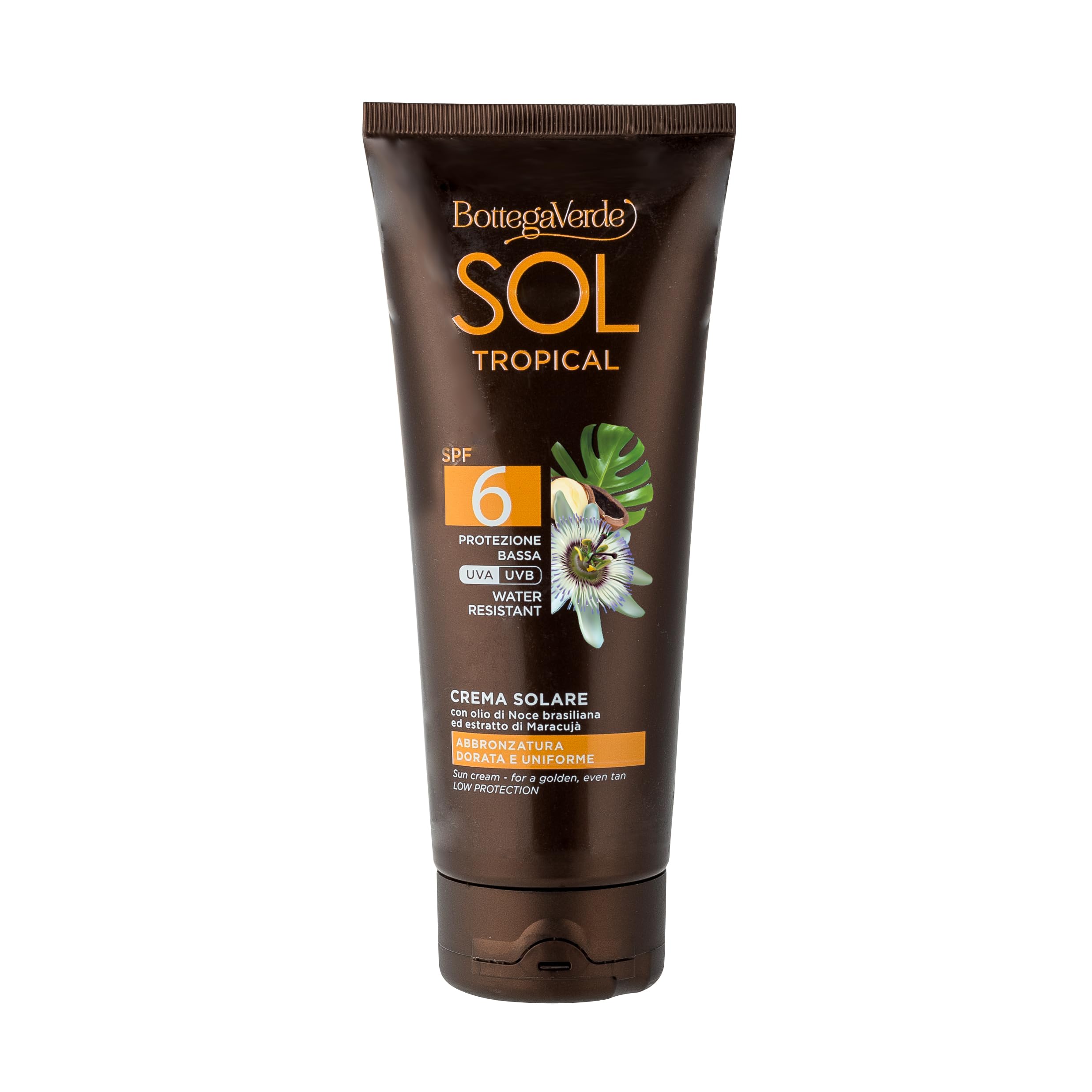 Bottega Verde - SOL Tropical, Crema Solare Corpo, 200 ml, SPF 6, Idratante e Profumata, Arricchita con Olio di Noce Brasiliana ed Estratto di Maracujà, Protezione Bassa, Ideale per Fototipo 5 e 6