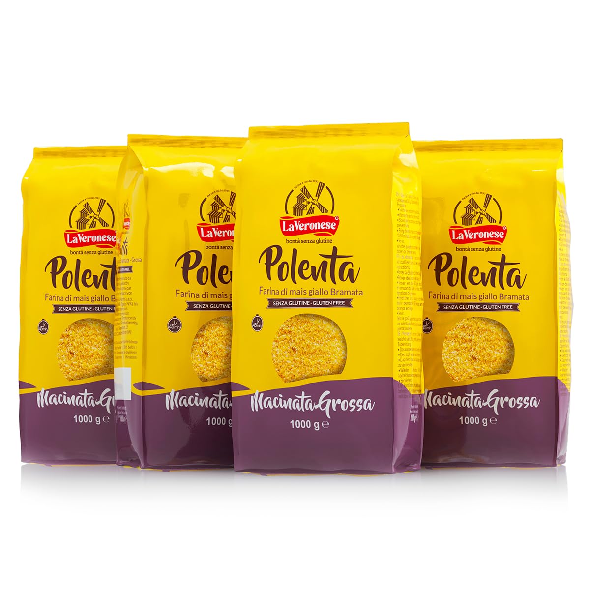 La Veronese | Polenta di Mais Giallo Bramata Macinata Grossa, Ottenuta dalla Macinatura di Mais Selezionato, Prodotto Senza Glutine, Polenta Di Farina Gialla, Tempo di Cottura 45 Minuti, 4X1000g