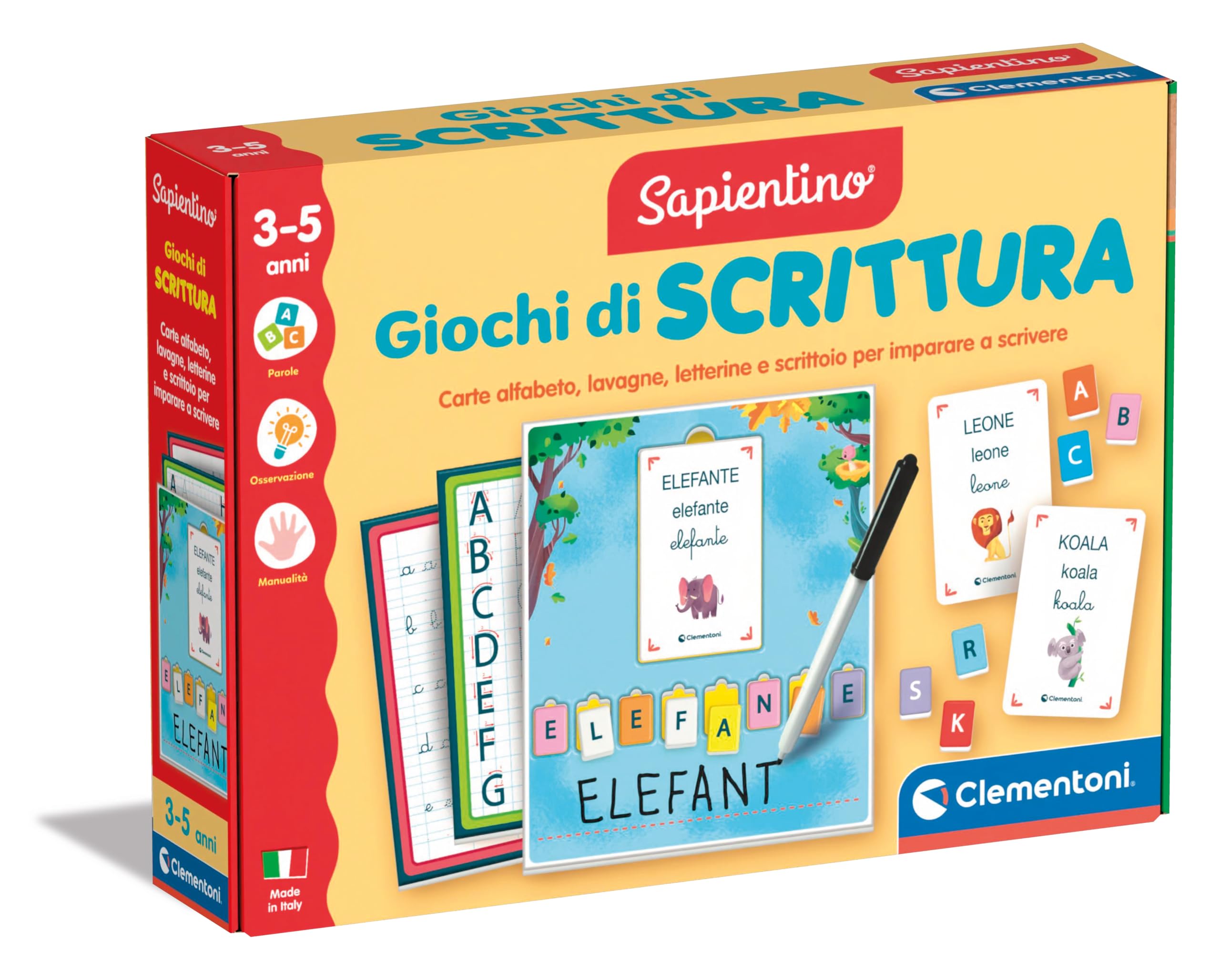 Clementoni Sapientino Montessori - Giochi di Scrittura, Gioco Educativo Bambini 3-5 Anni, Lavagnette Riscrivibili e Flashcards per Imparare a Scrivere, Made in Italy, Lingua Italiana, 16874