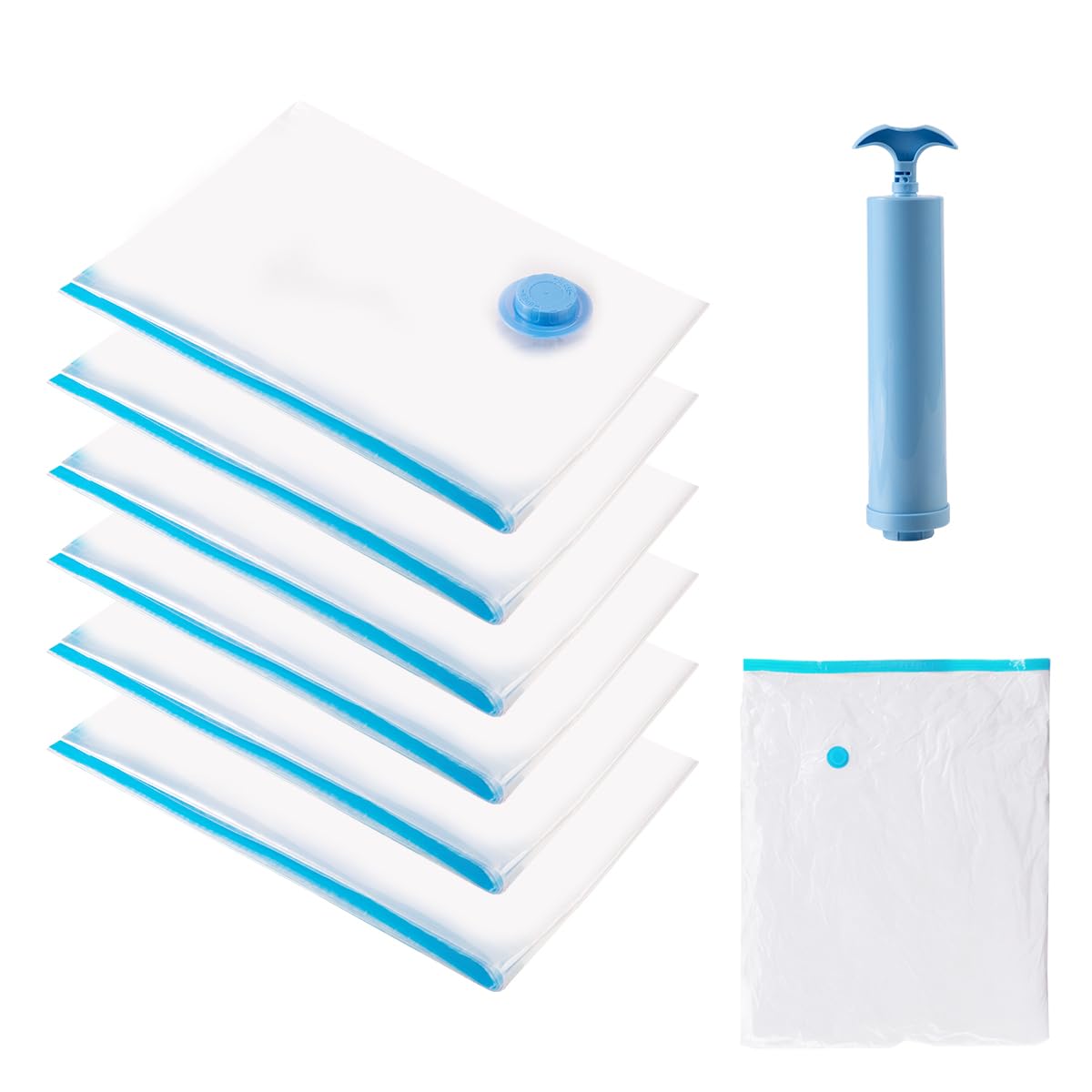 LiangYuanZen LiangYuanZen, set di 6 sacchetti sottovuoto per viaggi con pompa a mano, ideale per vestiti e risparmiare spazio