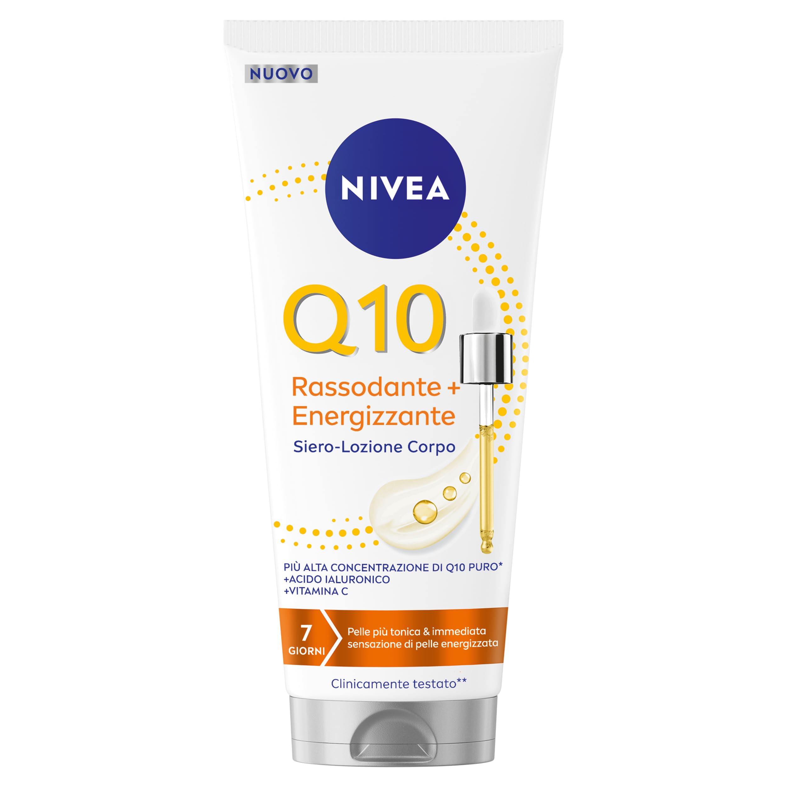 NIVEA Q10 Rassodante + Energizzante Siero-Lozione Corpo 200 ml, Lozione idratante e rassodante corpo con Coenzima Q10 Puro, Acido Ialuronico e Vitamina C per una cura del corpo tonificante