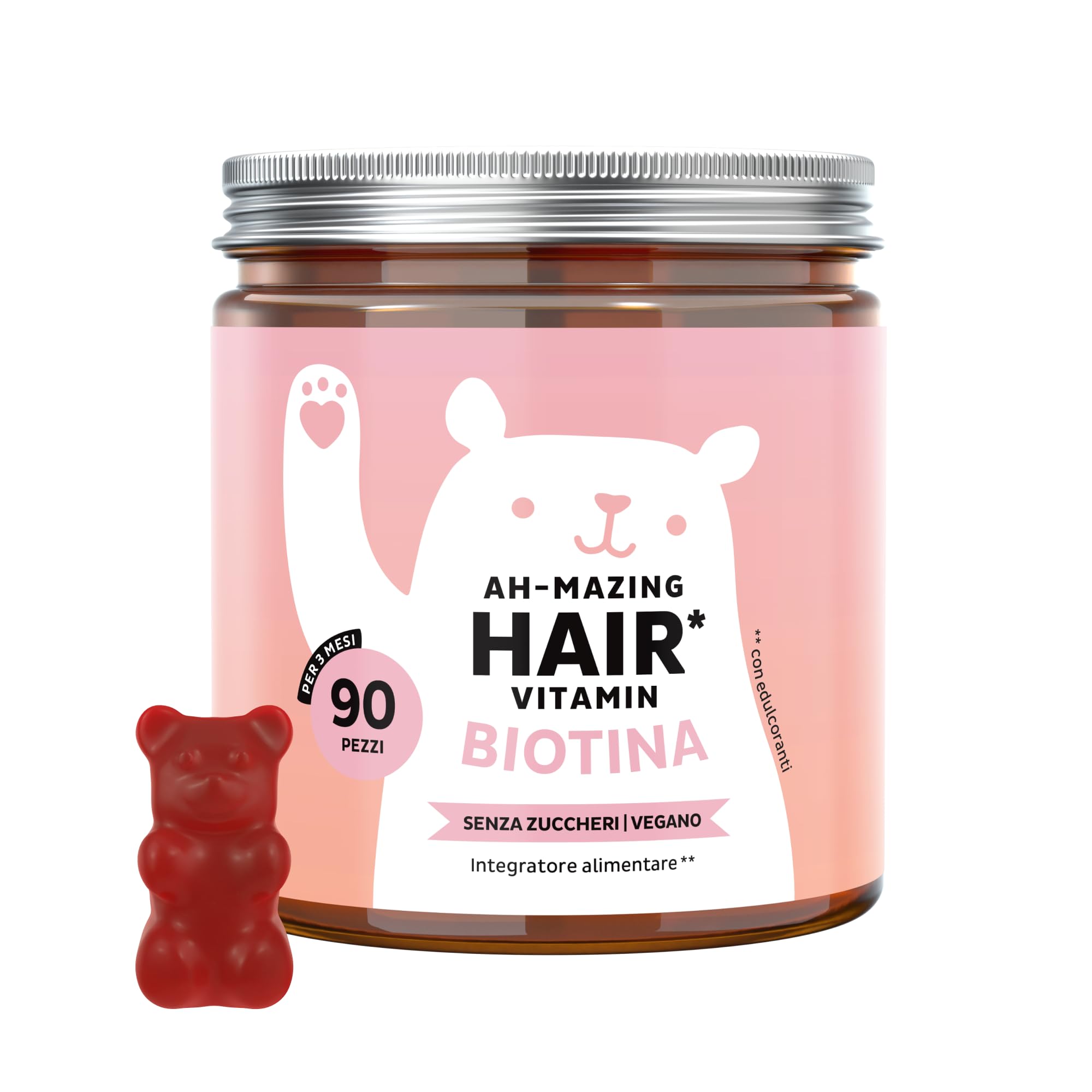 Biotina Gummies Ah-mazing Hair – Integratori per Capelli – Formula Potenziata – 10.000 µg di Biotina, Zinco, Vitamina B6, C, E e Iodio – 90 pezzi (3 Mesi), Vegane, Senza Zucchero, Bears with Benefits
