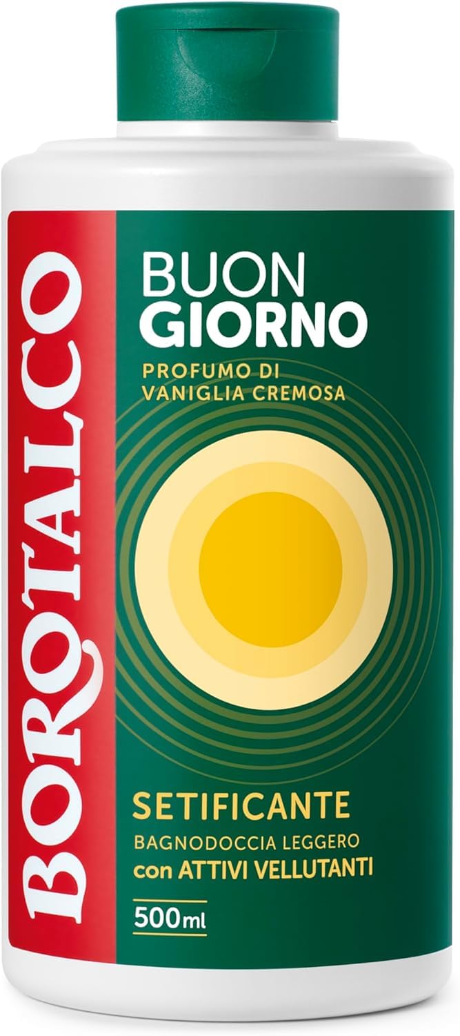 Borotalco, Bagnodoccia Buongiorno Setificante, con Attivi Vellutanti e Profumo di Vaniglia Cremosa, Texture Leggera, Dona Morbidezza e Comfort, Ideale per il Mattino, Flacone 500 ml